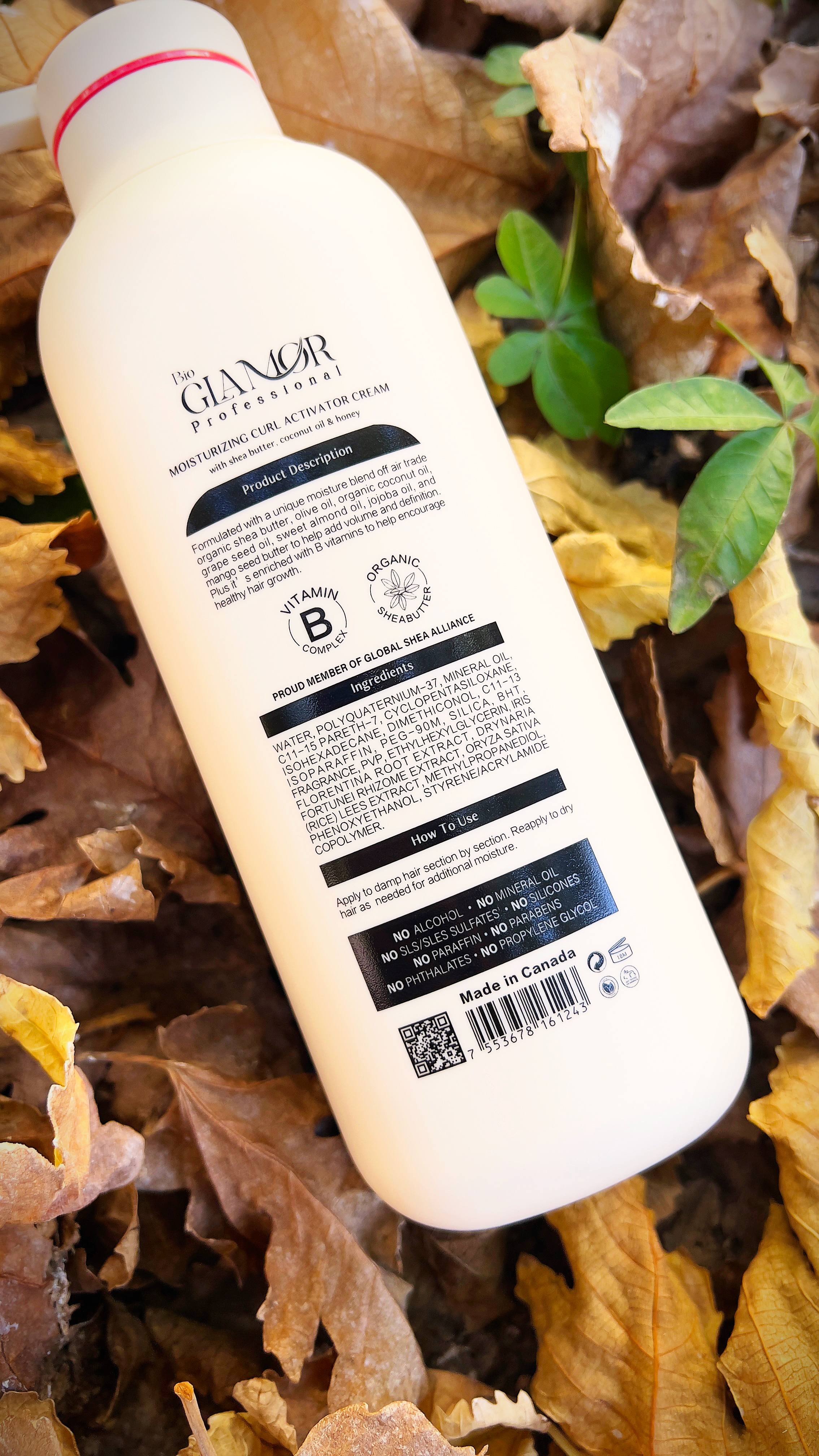 اکتیویتور موی فر گلامور حجم 450 میل ساخت کانادا حاوی شی باتر ، روغن نارگیل و عسل ، سفیدک اصلا نمیزنه و اصلاروی موهاتون احساس سنگینی نمیکنید